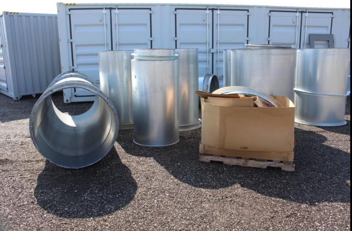 Various sizes of galvanized ducting available - 18 pieces total - connector rings and gaskets included